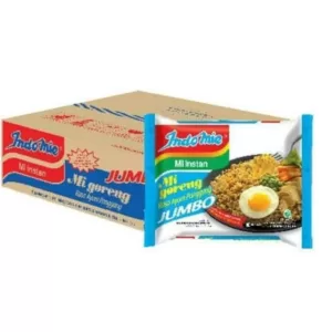 Indomie merupakan makanan instan yang sudah diminati oleh masyarakat sejak dulu. Kepopuleran Indomie Mie dikalangan masyarat tentu sudah tidak perlu diragukan lagi, dari anak-anak hingga orang dewasa pasti menyukai mie instan Indomie. Tidak hanya itu, aroma sedap dari Indomie sudah melekat pada hidung. Tanpa melihat Indomienya saja Anda pasti sudah dapat mengetahui dari aroma yang tercium oleh hidung, seketika tubuh Anda akan terasa terhipnotis oleh aroma lezat dan sedap yang ciptakan oleh Indomie. Tidak hanya itu, tanpa disadari muncul dari diri Anda keinginan untuk menyantap Indomie. Ciri khas Indomie yang tidak bisa ditahan terletak pada bumbu instannya, bumbu bubuk putih, ditambah dengan minyak, kecap dan sambal. Selanjutnya, tidak lupa untuk menambahkan bumbu pelengkap yang hadir pada kemasan yang akan menghasilkan mie instan terbaik siap santap. Dari seluruh produk Indomie yang banyak diminati oleh masyarakat, Indomie Jumbo menjadi salah satu andalannya.