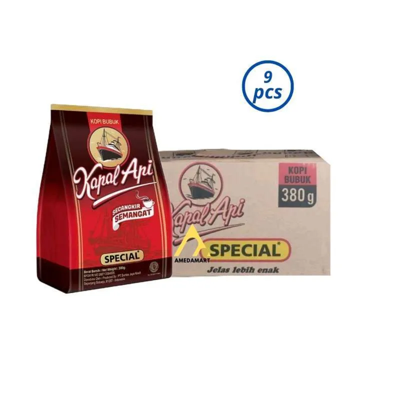 Kapal Api Spesial Merah 380g merupakan kopi bubuk yang terbuat dari biji kopi pilihan. Kapal api menghasilkan kopi yang harum dan lebih enak. Tuangkan satu sendok makan ke dalam cangkir, tambahkan gula secukupnya, kemudian seduh dengan air mendidih 200 ml dan kopi ini siap disajikan.