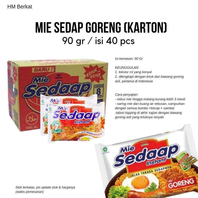 Mie Sedaap merupakan makanan instan yang sudah diminati oleh masyarakat sejak dulu. Kepopuleran Mie Sedaap dikalangan masyarat sudah tidak perlu diragukan lagi, dari anak-anak hingga orang dewasa pasti menyukai Mie Sedaap. Tidak hanya itu, aroma sedap dari Mie Sedaap sudah melekat pada hidung. Tanpa melihat Mie Sedaapnya saja Anda pasti sudah dapat mengetahui dari aroma yang tercium oleh hidung, seketika tubuh Anda akan terasa terhipnotis oleh aroma lezat dan sedap yang ciptakan oleh Mie Sedaap. Tidak hanya itu, tanpa disadari muncul dari diri Anda keinginan untuk menyantap Mie Sedaap. Ciri khas Mie Sedaap yang tidak ditahan terletak pada bumbu instannya, bumbu bubuk putih, ditambah dengan minyak, kecap dan sambal. Selanjutnya, tidak lupa untuk menambahkan bumbu pelengkap yang hadir pada kemasan. Dari seluruh produk Mie Sedaap yang banyak diminati oleh masyarakat, Mie Sedaap Goreng menjadi salah satu andalannya.