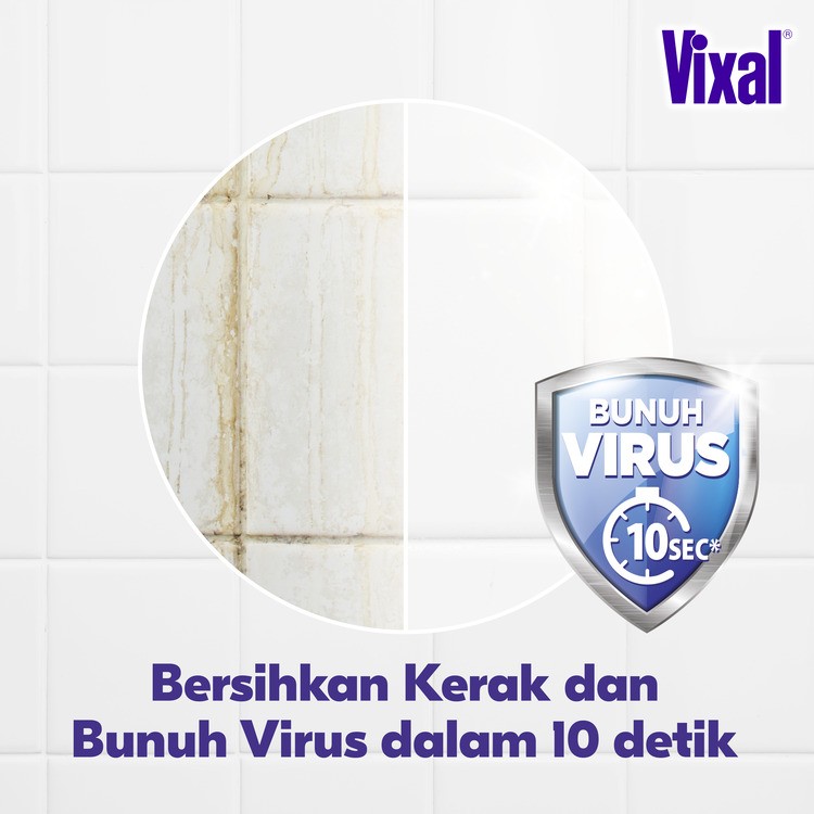 Vixal pembersih porselen kamar mandi HCl anti kerak ekstra kuat, dengan formula yang tangguh membersihkan noda membandel di kamar mandi, dan memberikan keharuman yang segar. Cairannya ampuh untuk membersihkan segala noda pada permukaan dinding, lantai, dan porselen di kamar mandi, serta kerak toilet. Tidak hanya tangguh membersihkan noda, cairan pembersih kamar mandi vixal juga efektif membunuh kuman penyebab penyakit di kamar mandi.
